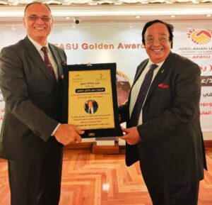 علي كامل منصور يتسلم الدرع الذهبي لجائزة رجل العام من الإتحاد الإفريقي الآسيوي AFASU