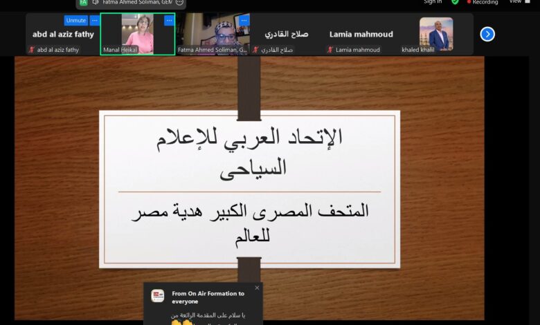 نظم الاتحاد العربي للإعلام السياحي، اليوم، صالونًا إعلاميًا افتراضيًا عبر تقنية “زووم”، تحت عنوان “صالون الإعلام السياحي من أم الدنيا ورحلة ملكية مع الملوك الفراعنة والمتحف المصري الكبير – أكبر متحف في العالم”.