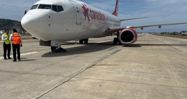 شهد مطار أنطاليا التركي حادثة خطيرة كان من الممكن أن تتحول إلى كارثة، حيث نجت طائرة مدنية من طراز بوينغ 737، تابعة لشركة كورندون للخطوط الجوية، من حادث مروع بعد أن تمزقت عجلاتها أثناء الهبوط.