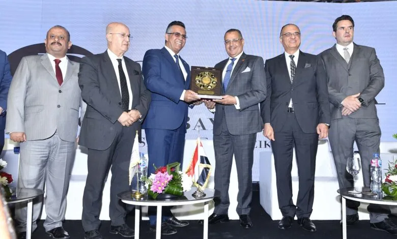 صباح علال رئيس الاتحاد العربي للإعلام السياحي يهدي “درع الرافدين” لمحافظ جنوب سيناء في احتفالية “افاسو”