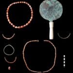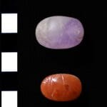 ومن بين أبرز المكتشفات، تم العثور على قلادة مكونة من 30 خرزة أسطوانية الشكل من حجر الأماتيست، محاطة بخرزتين أسطوانيتين من العقيق، بالإضافة إلى تميمة على شكل رأس فرس النهر.