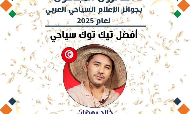 نال صانع المحتوى التونسي خالد رمضان جائزة أفضل تيك توك سياحي عن عمله المعنون بـ”التاريخ والآثار والتراث”، وذلك ضمن فعاليات الملتقى العربي السابع عشر للإعلام السياحي الذي نظمه الاتحاد العربي للإعلام السياحي في فندق راديسون بلو بالقاهرة في الفترة من 14 إلى 17 أبريل 2025، حيث أقيمت هذه الفعالية بمشاركة ممثلين عن عدد من الدول العربية شملت قطر والبحرين والسعودية والإمارات وتونس والجزائر والمغرب، وشهد الملتقى حضورًا إعلاميًا بارزًا واهتمامًا متزايدًا بمنصات التواصل الاجتماعي كمحرك رئيسي لتطوير القطاع السياحي العربي.