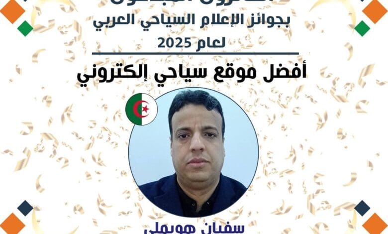 شهدت العاصمة المصرية القاهرة تتويجًا جديدًا لجهود الإعلام السياحي الرقمي، حيث كرّم الاتحاد العربي للإعلام السياحي سفيان هويملي بجائزة أفضل موقع إلكتروني سياحي عربي عن منصته “السياحة”، وجاء هذا التتويج خلال فعاليات الملتقى العربي السابع عشر للإعلام السياحي، الذي نظمه الاتحاد في فندق راديسون بلو بالقاهرة خلال الفترة من الرابع عشر وحتى السابع عشر من أبريل 2025.