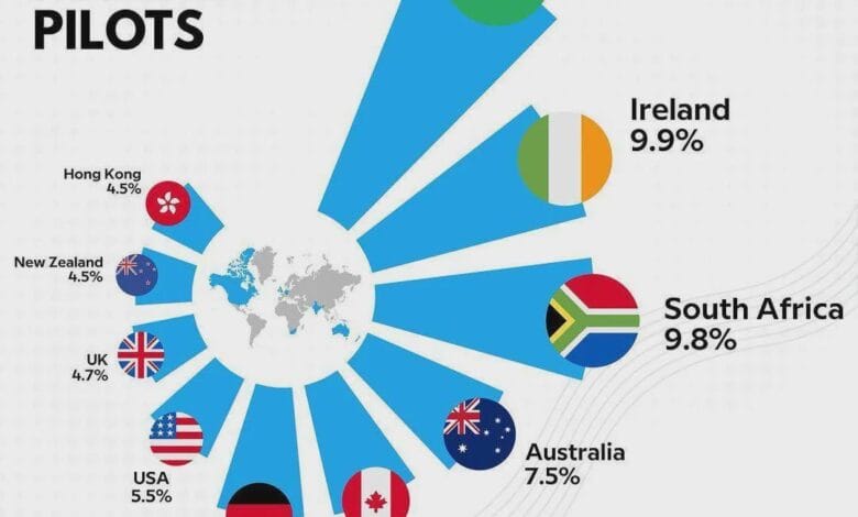 تشير البيانات إلى أن دولًا أخرى مثل أيرلندا وجنوب إفريقيا وأستراليا حققت نسبًا متفاوتة لكنها متقدمة نسبيًا مقارنةً بالدول الصناعية الكبرى، حيث بلغت نسبة قائدات الطائرات في أيرلندا 9.9%، بينما وصلت في جنوب إفريقيا إلى 9.8%، وتُظهر هذه الأرقام أن التوزيع الجغرافي لتمثيل المرأة في مجال الطيران ليس محصورًا بدول محددة أو متقدمة اقتصاديًا، بل يرتبط غالبًا بالسياسات الوطنية والدعم المؤسسي الذي يُمنح للنساء منذ مراحل التدريب الأولى.