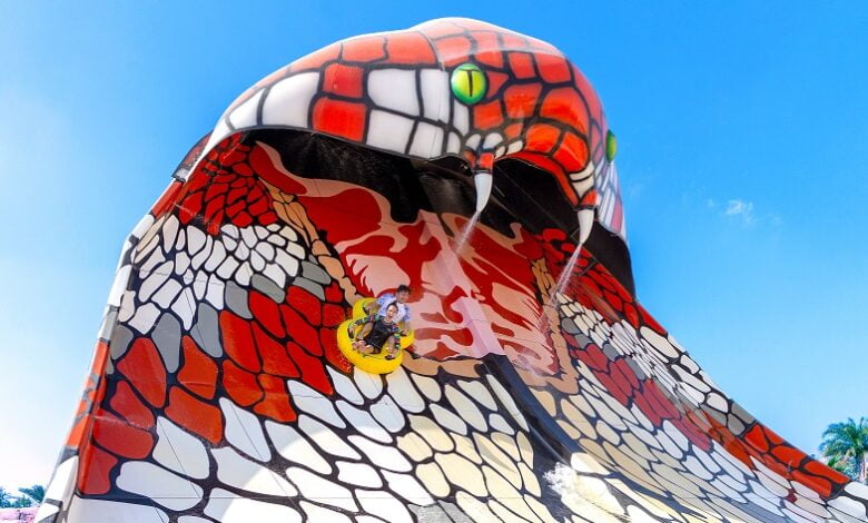 - مغامرات مائية مثيرة: تُقدم الحديقة مجموعة واسعة من المنزلقات المائية المثيرة، مثل لعبة “كينغ كوبرا” المغلقة، و”الزلاجات الدوارة” التي تُتيح للراكبين الاستمتاع بمناظر خلابة للحديقة من ارتفاع 32 مترًا، و”لعبة الكثبان الرملية” لمحاكاة تجربة ركوب الأمواج.